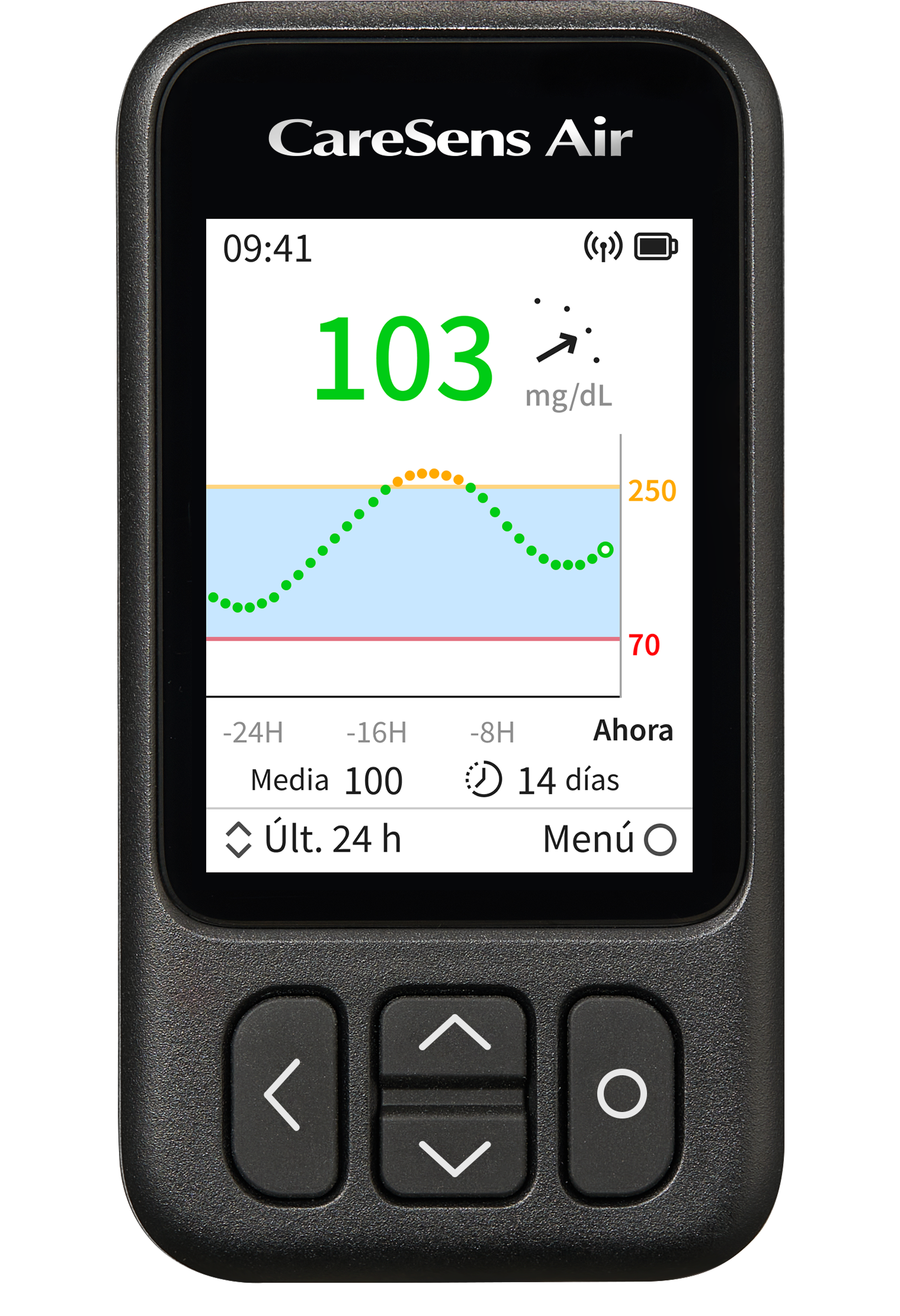Se mostrarán sus niveles de glucosa durante las últimas 24 horas.