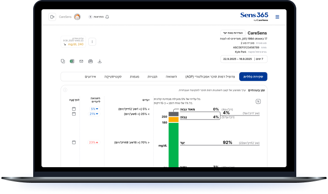 - מספק נתונים סטטיסטיים על רמת הסוכר קבלת תובנות טובות יותר.