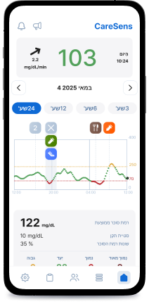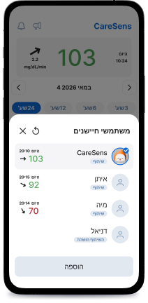 לחוויה פשוטה וקלה של ניהול רמות הסוכר ושיתוף נתונים עם יישומון CareSens Air.