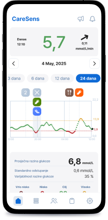Učinkovito upravljajte razinom glukoze u krvi pomoću aplikacije CareSens Air.