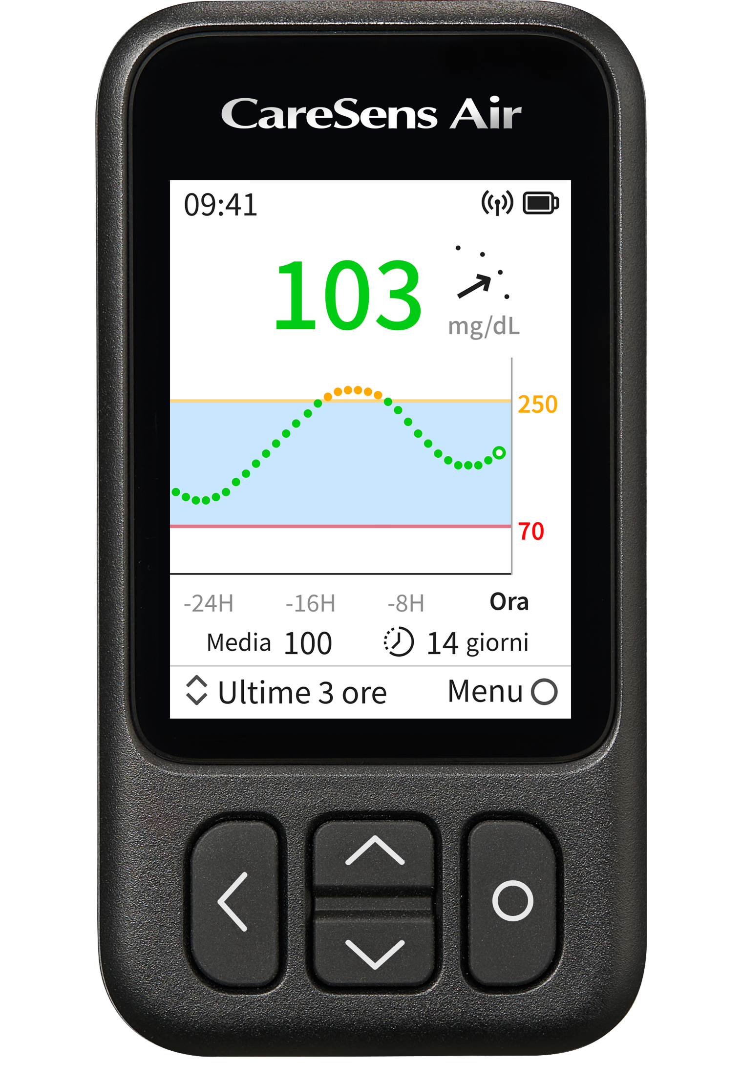 È un glucometro continuo che visualizza i valori e le tendenze del glucosio in tempo reale. Un singolo sensore monitora continuamente la glicemia per un massimo di 15 giorni.