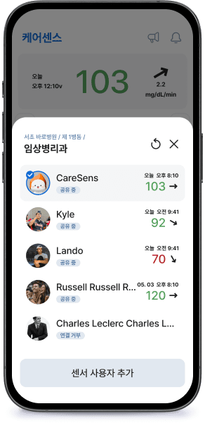 센스365는 케어센스 에어 사용자와 건강관리자가 혈당을 더욱 효과적으로 모니터링 하고 관리할 수 있도록 서비스를 제공하는 플랫폼입니다.