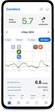 Experience easy glucose management and data sharing with CareSens Air app.