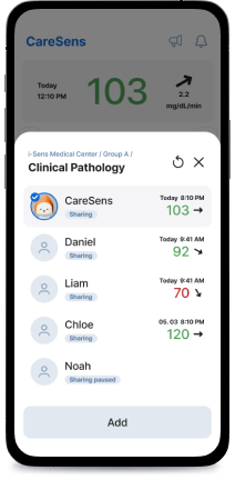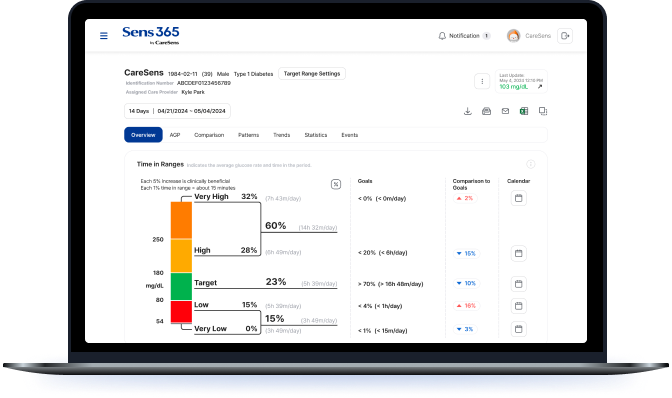 Use the CareSens Air app together with the integrated data management platform, Sens365.
