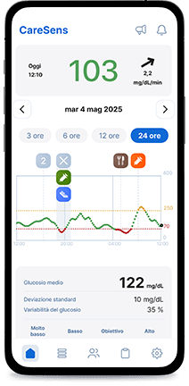 Sperimenta una facile gestione del glucosio e condivisione dei dati con l'app CareSens Air.