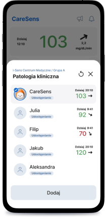 Łatwe zarządzanie poziomem glikemii i udostępnianie danych dzięki aplikacji CareSens Air.